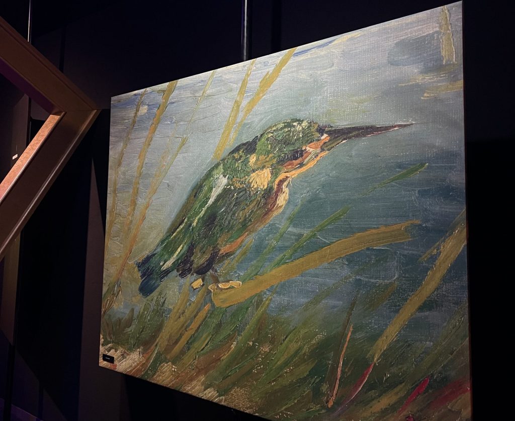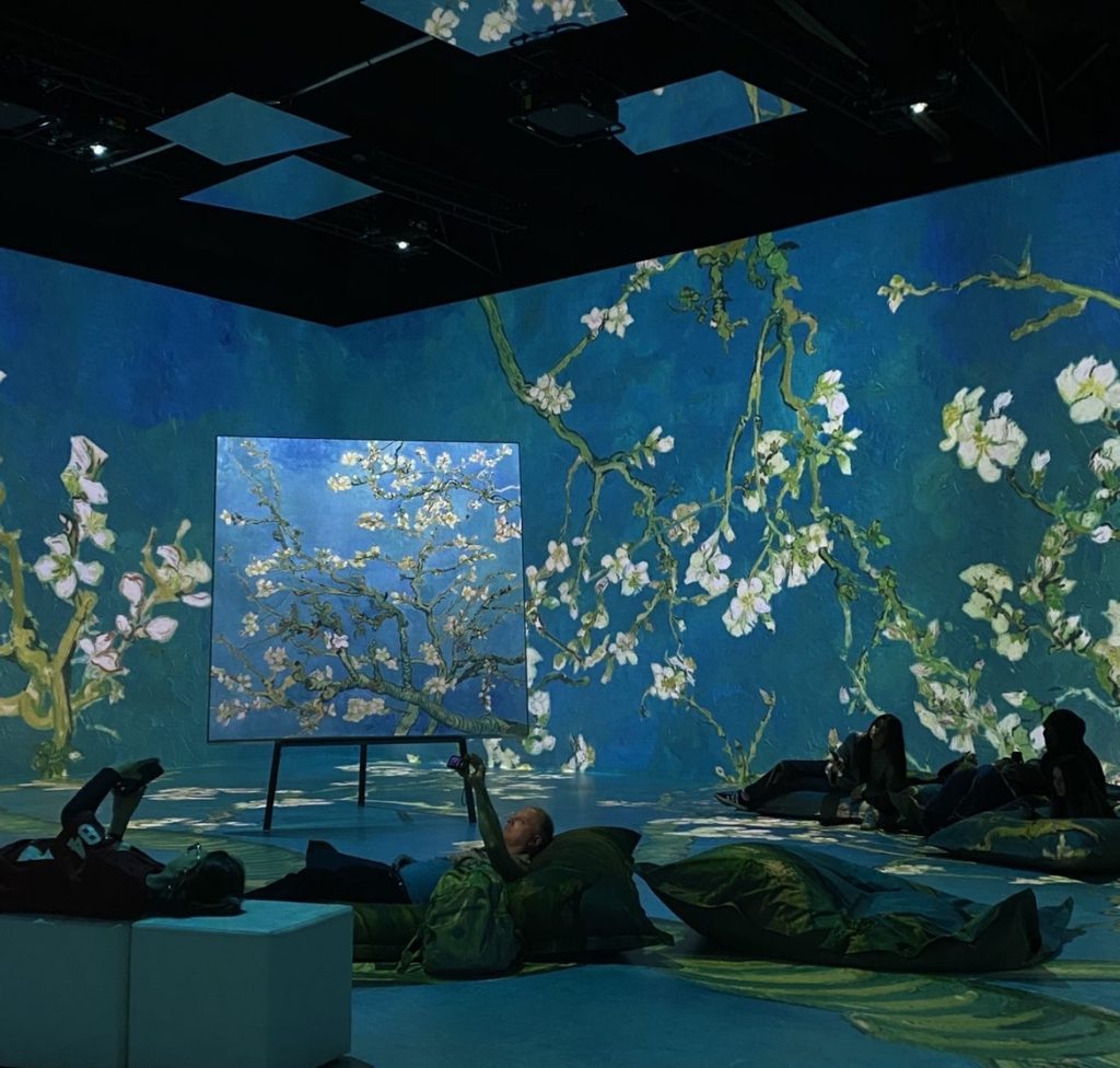 Besonders beeindruckend war der letzte große Raum, in dem Gemälde als bewegte Projektion an die Wände geworfen wurden. Es war wie eine kleine Show: Die Bilder drehten sich, bewegten sich über die Wände und zeigten so sein Leben und seine Kunst, die sich Jahr für Jahr weiterentwickelt hat. Er malte viele seiner Werke in der sogenannten Impasto-Technik, bei der man jeden einzelnen Pinselstrich erkennt – so wirken seine Bilder lebendig und voller Bewegung, noch heute.